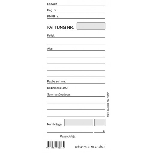 (Eesti) Kviitung A7 pikuti, 100 lehte
