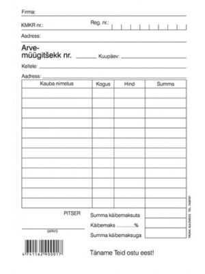 Arve-müügitšekk A6, pikuti, 100 lehte